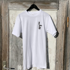 Weißes Shirt mit Siebdruck Handgedruckt in München.