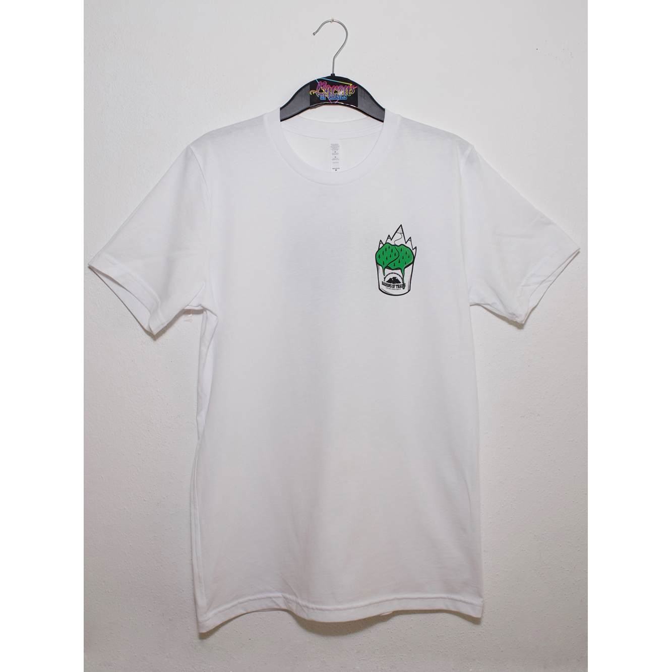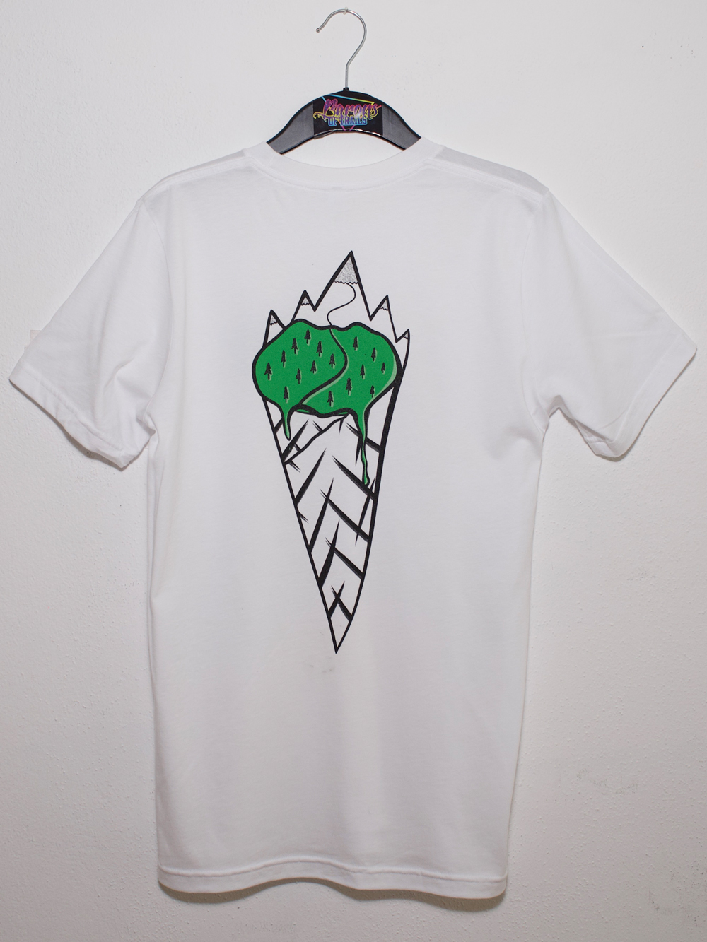 Weisses Shirt mit zweifarbigem Ice Cream Druck auf Vorder- und Rückseite.